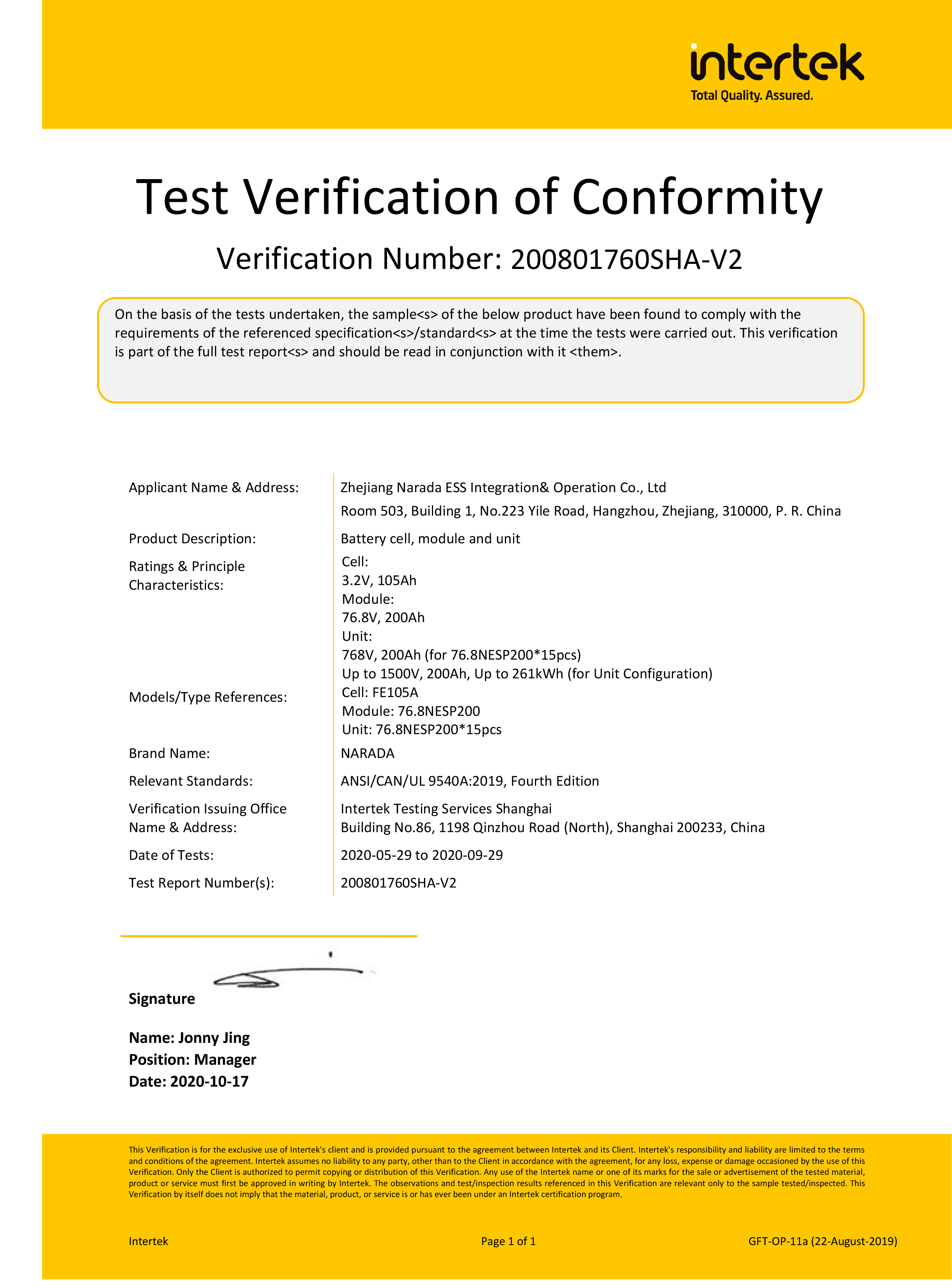 今年会电源为全球第一批通过MW级集装箱储能系统UL9540、UL9540A认证的企业。通过UL9540、UL9540A认证,意味着今年会储能系统在全球范围内具有极佳的认可度。